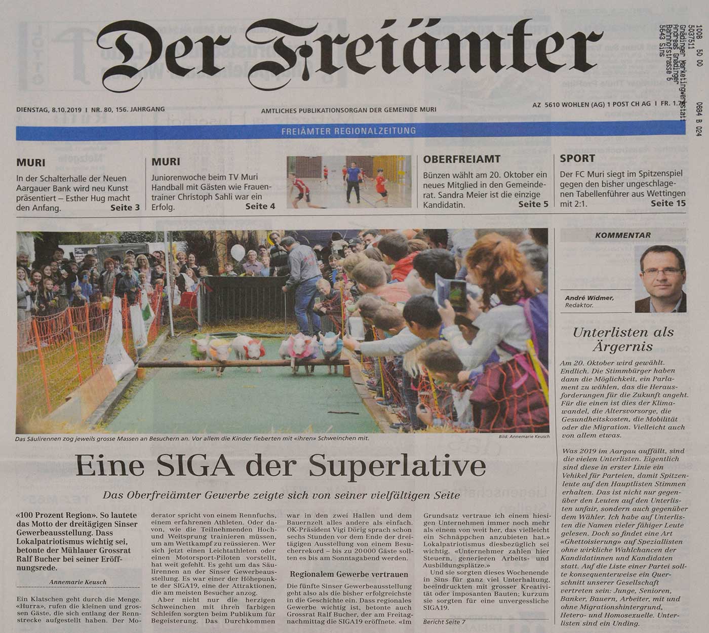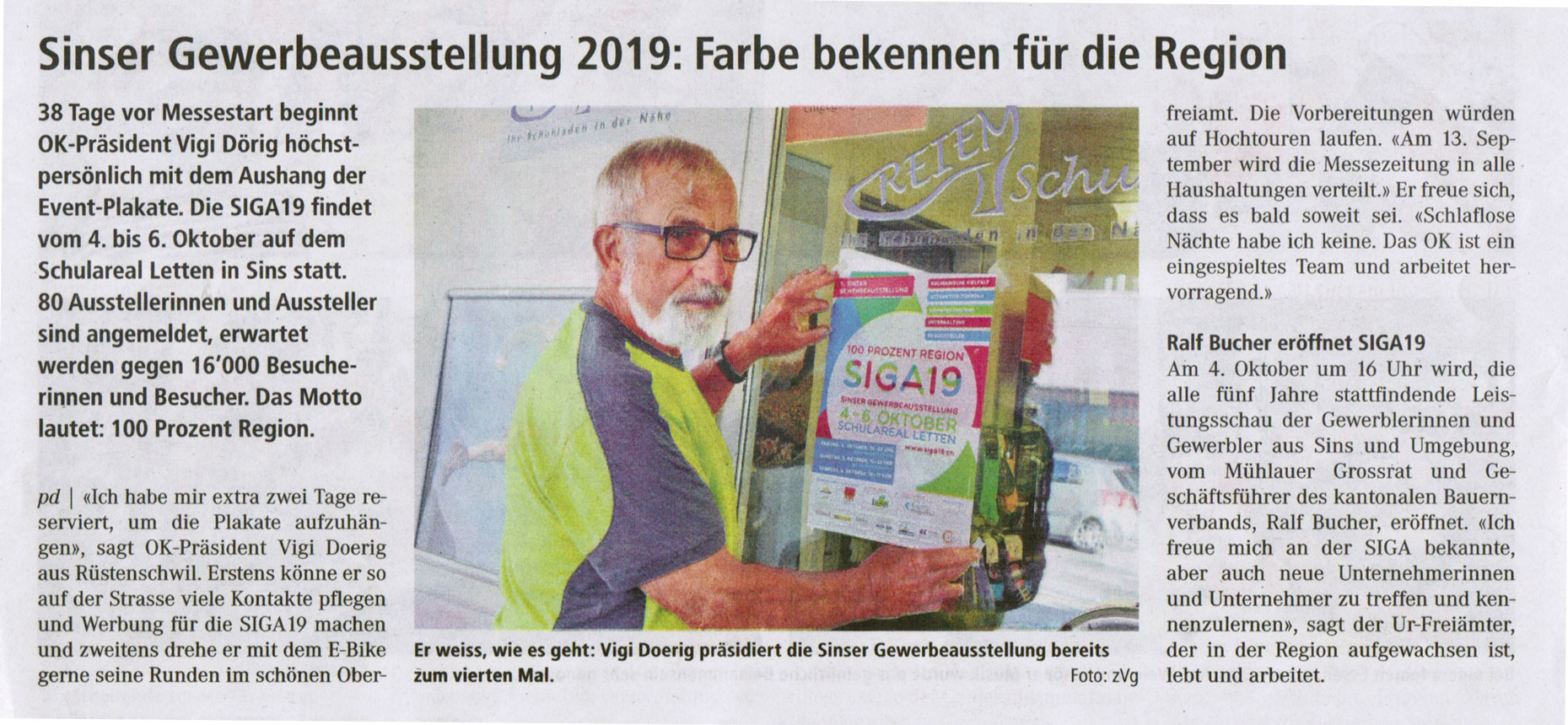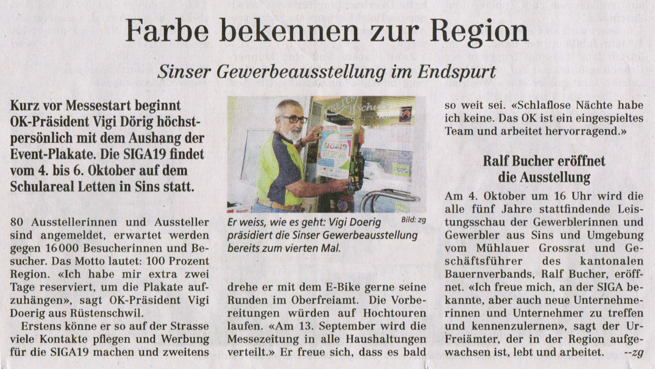 Die fünfte Sinser Gewerbeausstellung, die SIGA19, schloss nach drei erlebnisreichen Tagen die Toren mit einem Besucherrekord. 19'000 Besucher, 3000 mehr als vor fünf Jahren, besuchten die Leistungsschau des Oberfreiämter Gewerbes.